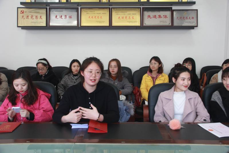 颁奖后,2017级的马毓璘同学、2016级的于晓楠同学、2015级的刘彩霞同学分别代表国家励志奖学金、省政府奖学金、国家奖学金获得者依次发言。她们对国家、公司给予的奖励心怀感恩,对老师的教育和鼓励表达感谢,并对学弟学妹们发出倡议:“越努力,越幸运”。