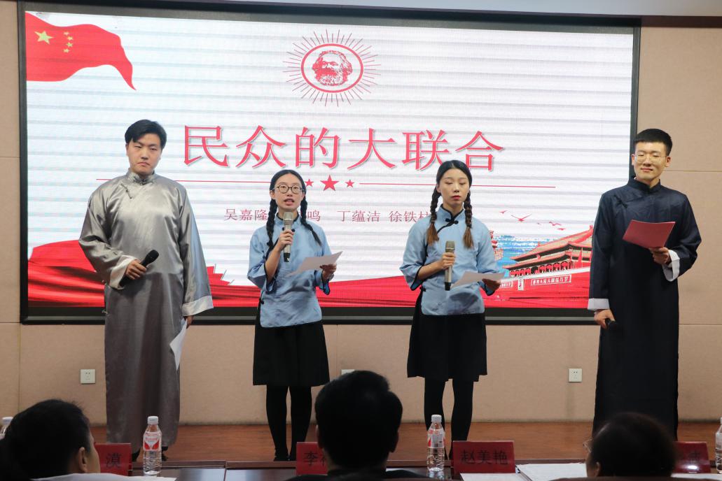 首先进行的马克思主义经典著作诵读大赛决赛由思想政治教育专业研究生徐铁柱主持,经过之前初赛、复活赛的层层选拔,由公司不同专业研究生组成的六支队伍参加决赛角逐。参赛选手以饱满的精神状态、多样的表现形式、专业的诵读内容,围绕《共产党宣言》、《庶民的胜利》以及习近平总书记重要讲话等马克思主义经典著作奉献了精彩的诵读展示,评委老师根据选手表现进行现场打分。李福岩教授对选手的表现作了点评,充分肯定了各组选手的精彩诵读,并鼓励公司研究生从熟知、真知、践行三个层面把握马克思主义精神,使马克思主义事业的发展永无止境。
