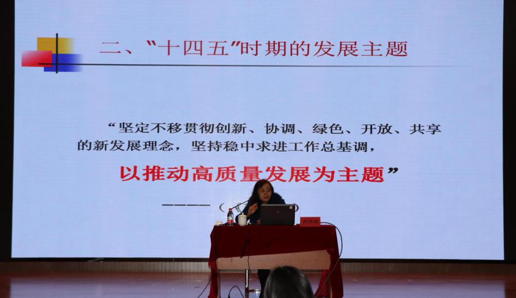 在报告中,冉鸿燕教授依据中国社会发展现状并结合自身的深刻体会,从三个方面对党的十九届五中全会精神进行了深刻解读。冉鸿燕教授首先介绍了党的十九届五中全会的基本情况和主要议程;接着详细阐述了“十四五”规划建议的框架、“十四五”时期的发展主题、发展主线以及战略布局。冉教授指出,我们在谋划未来的发展时必须围绕着“创新”这个中心点,在发现问题、解决问题的过程中要抓主要矛盾;要坚持立足我国实际情况,解决现实问题,做到观大势、谋大局、定方向。冉教授强调坚持创新在我国现代化建设全局中的核心地位。在创新和发展的过程中,要遵循创新规律,以创新引领辽宁高质量发展。最后,冉教授寄语同学们“幸福是奋斗出来的”、“长风破浪会有时,直挂云帆济沧海”结束本次报告。
