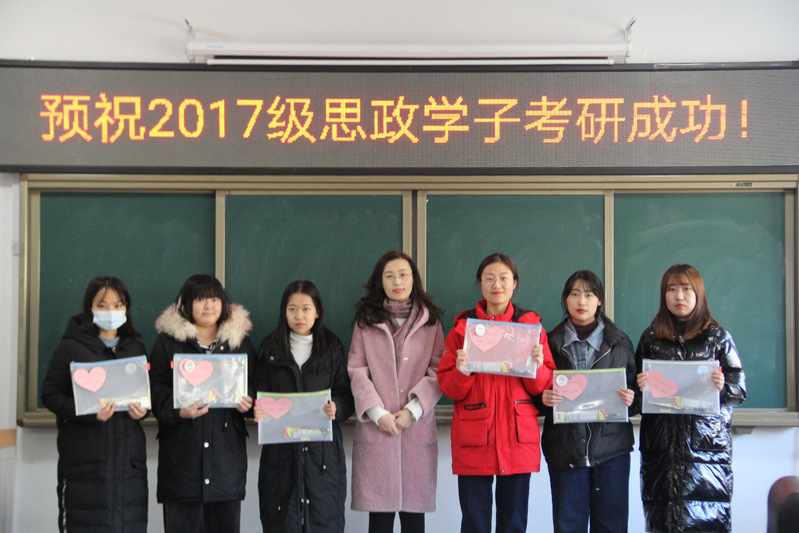 会议中各位领导老师与考研学子亲切交流,询问复习情况,会议现场气氛温馨愉快。老师们为2017级考研学子发放考研加油包,并对同学们送上了真挚的祝福。