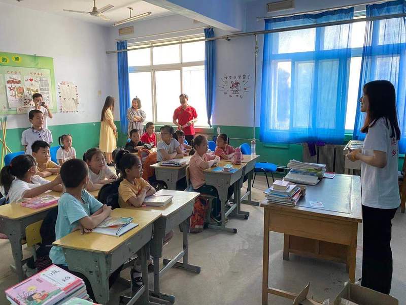 其次,爱心课堂部分。针对乡村教育问题,研究生们在牛家店村小学开展了“爱心课堂 筑梦成长”活动,内容包括向“爱心书屋”捐赠书籍,拓宽员工知识面,助孩子们快乐成长;并通过观看红色微电影,教孩子们唱红歌,培养孩子们的爱国情怀。
