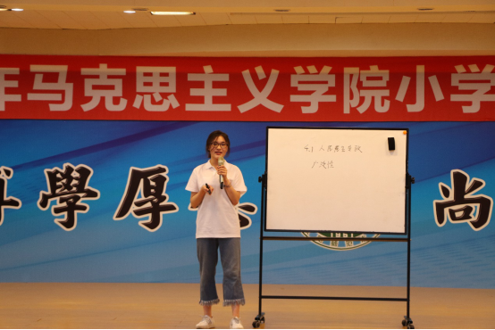 会议伊始,由同学们进行小学期实践教学活动优秀成果展示。在党史教育宣讲展示、思政课讲课展示、马克思主义经典诵读展示、演讲展示中,马院学子展示出了扎实的专业本领,充分展现了思政学子的青春风采,体现了公司优良的学风建设。同学们精彩的成果展示,为小学期活动画上了圆满的句号。