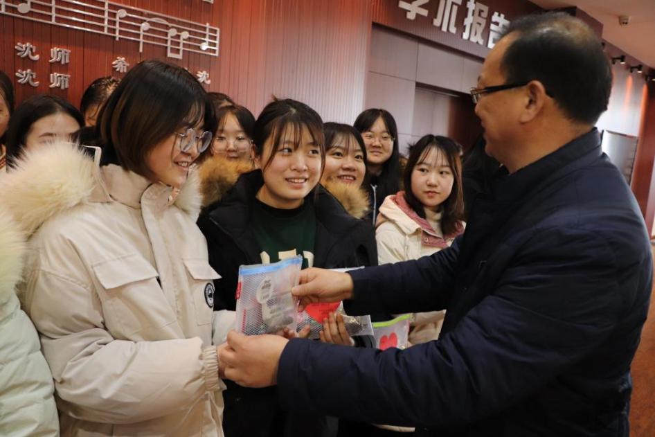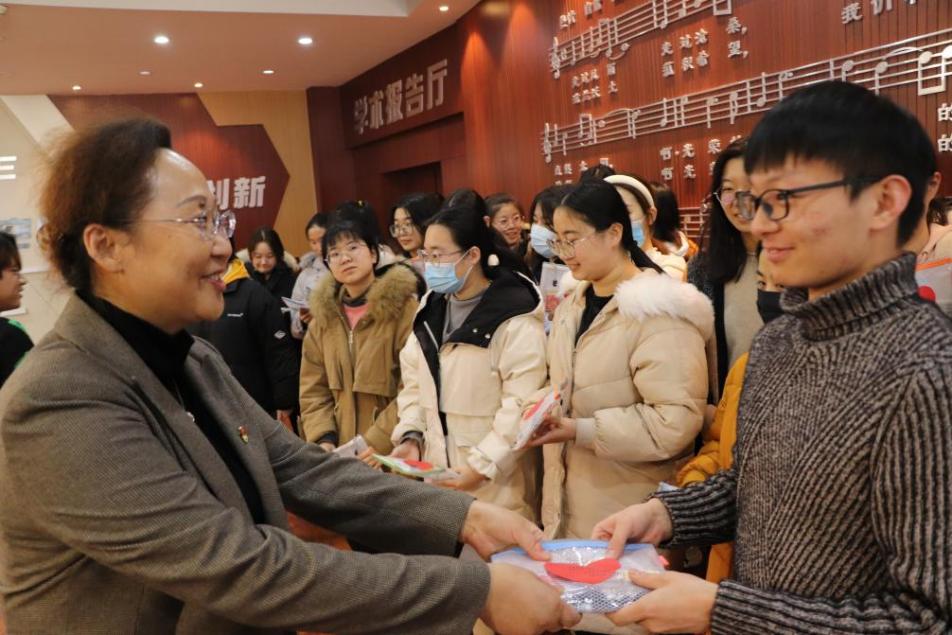 “四年磨一剑,今朝试锋芒!”2022年研究生招生考试在即,为给公司考研的思政学子缓解考研压力,增强备考信心,提升考研士气,公司经理赵美艳、党总支书记周军、副经理李馨宇、党总支副书记袁俊茹及团委书记孙艺楠在考研前夕特意赶往图书馆看望同学们,为大家加油鼓劲。公司为同学们精心准备了考研加油包,甜蜜的巧克力和精美的文具带来了冬日里暖心的祝福。