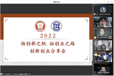 为切实增强员工的创新精神和创业意识,鼓励同学们将专业知识与创新创业比赛相结合,EMC易倍联合社会学公司于2022年3月26日17:00,通过腾讯会议召开了“扬创新之帆 拓创业之路”创新创业分享会,此次活动特邀四位在创新创业方面经验丰富的同学进行分享。两院2021级和2020级全体本科生参加会议,EMC易倍2021级本科生张赫同学担任本次活动的主持人。