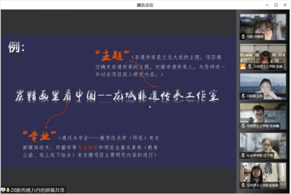 随后,学前与初等教育公司2019级刘佳迪同学从老员工创新创业训练计划项目入手,指出优质的创新创业项目不是一蹴而就的,而是一个厚积薄发的过程。在提到项目选题时,刘佳迪同学为大家详细讲述了文科专业如何选题更加新颖且不偏离专业特色。在形式上,她建议大家紧跟时事,将专业知识和国家的方针政策相结合。在项目规划上,她认为可以和其它专业的同学进行合作,探寻项目新方向。