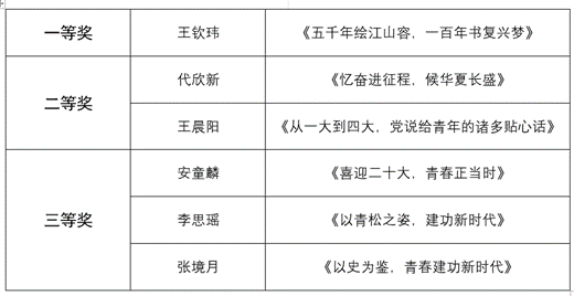 在征文赛道中,同学们重温建党历史,追忆峥嵘岁月,用真诚的笔触回顾一大到四大往昔,表达了作为新时代青年建功新时代、奋进新征程的信心与决心,展现了青年一代蓬勃的朝气。