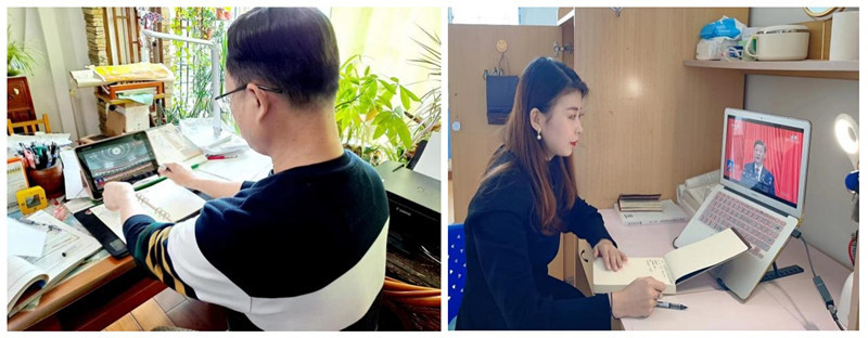 公司党支部书记、青年教师居家观看党的二十大直播盛况并认真记录