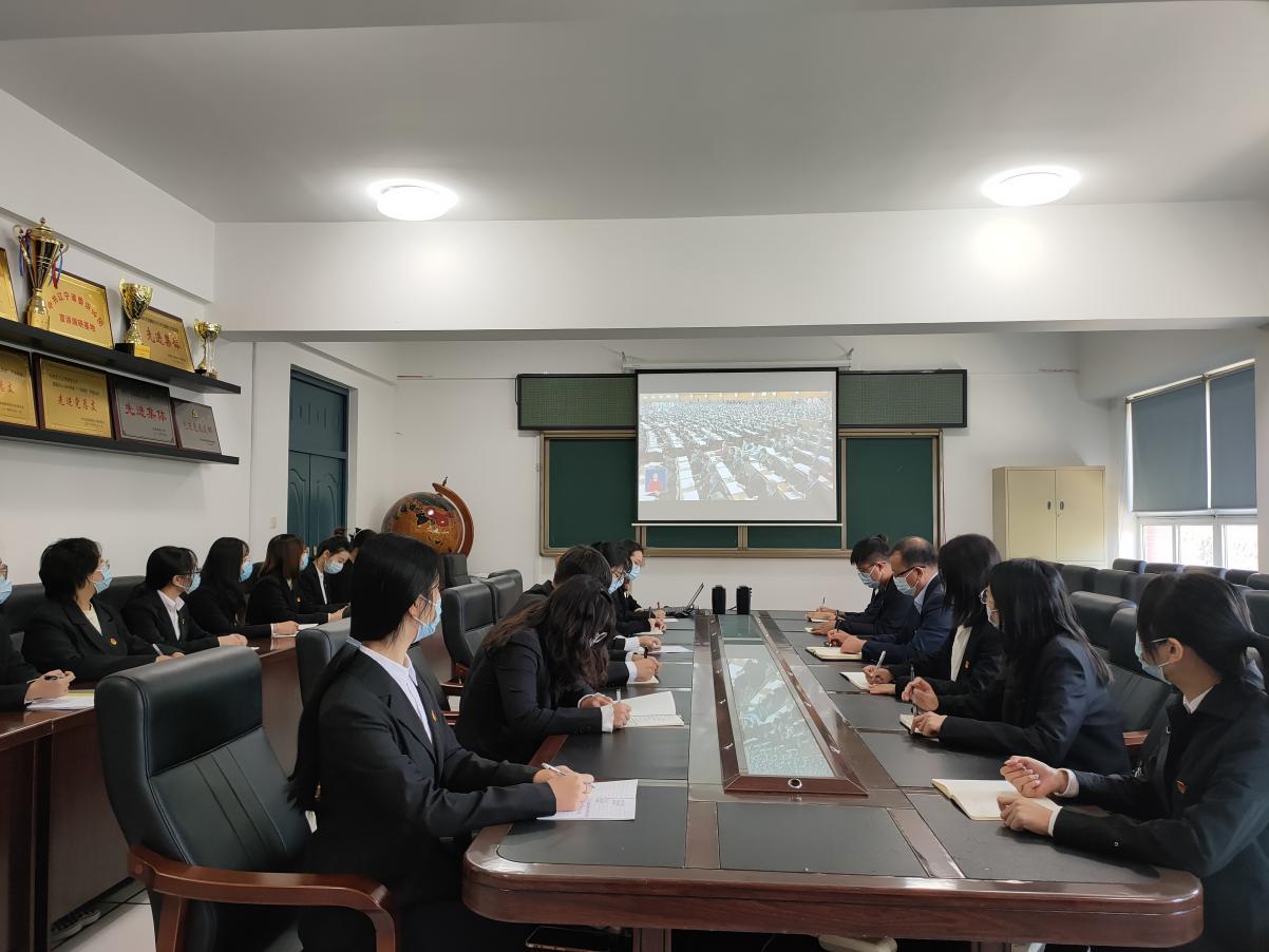 公司党委书记周军教授带领老员工红色理论宣讲团成员,老员工党建学会成员,员工党员代表共30人在公司350会议室进行线下集中观看;公司其他领导班子成员、党委成员、各党支部书记、支部委员、青年教师代表分别在办公室及居家进行观看。