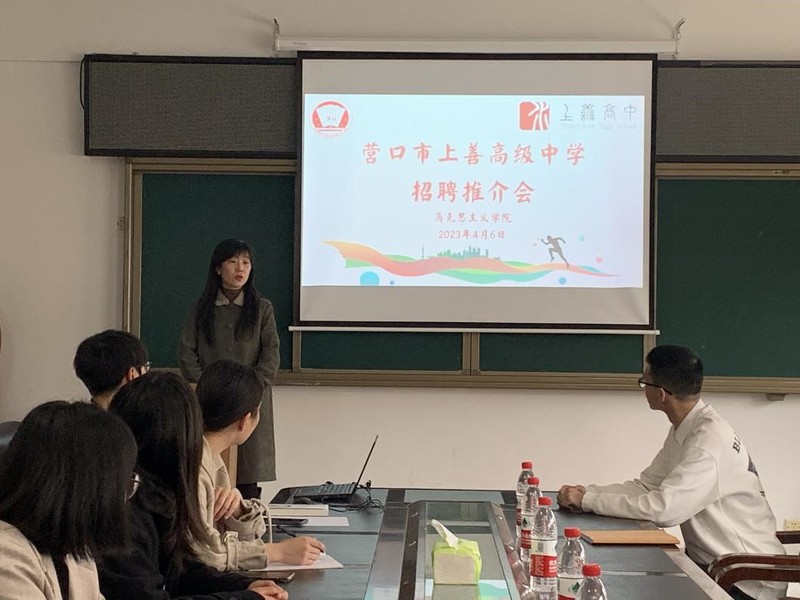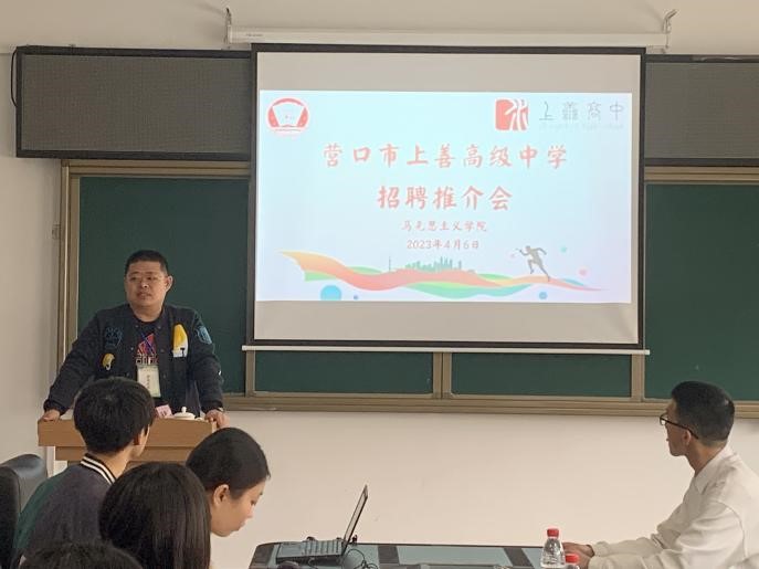 接着,营口市上善高级中学苏宏雷主任通过播放公司宣传片的形式让大家对上善高级中学有了初步了解。随后,详细介绍了公司环境、岗位需求、薪资待遇、人文关怀、发展前景等方面的情况,并对员工提出的具体问题进行了细致的解答。他表示,营口市上善高级中学始终坚持“笃学尚行,止于至善”的校训,不断改善办学条件,强化科学管理,提升办学质量,为青年教师提供学习成长的空间。