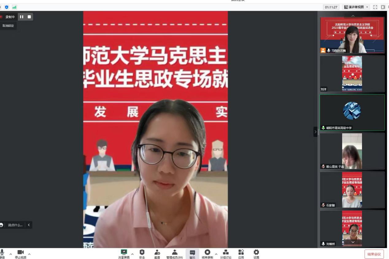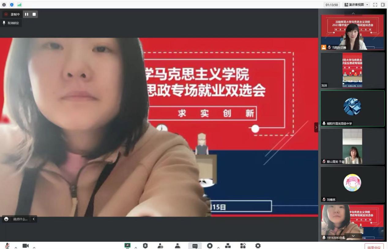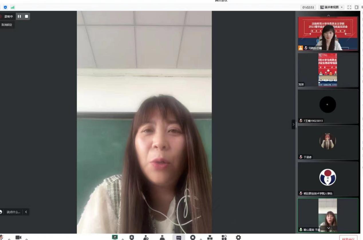 接下来,各参会单位从公司环境、职位要求以及薪资待遇等方面分别进行了详细的介绍。沈阳市汇置万博公司教学主任邢老师从办学理念、校园文化、教师风采、招聘岗位四个方面对其公司进行介绍。她指出,集团始终秉持“构建育人生态,培育阳光生命,奠基幸福人生”的办学理念,为各位老师提供优质的工作环境;朝阳市育英高级中学执行董事长康老师从公司概况、薪资待遇、人文关怀三个方面进行了宣讲。从康董事长真挚的话语中,同学们感受到了公司深厚的文化底蕴以及对人才培养的重视;随后,明达职业技术公司人事处周老师从集团概况、后勤设施以及福利待遇三个方面进行了介绍;鞍山市育英公司办公室主任于老师从公司历史文化发展、员工学情现状等方面对公司进行具体介绍。各单位在耐心细致介绍的同时,也表达了对同学们的欢迎。