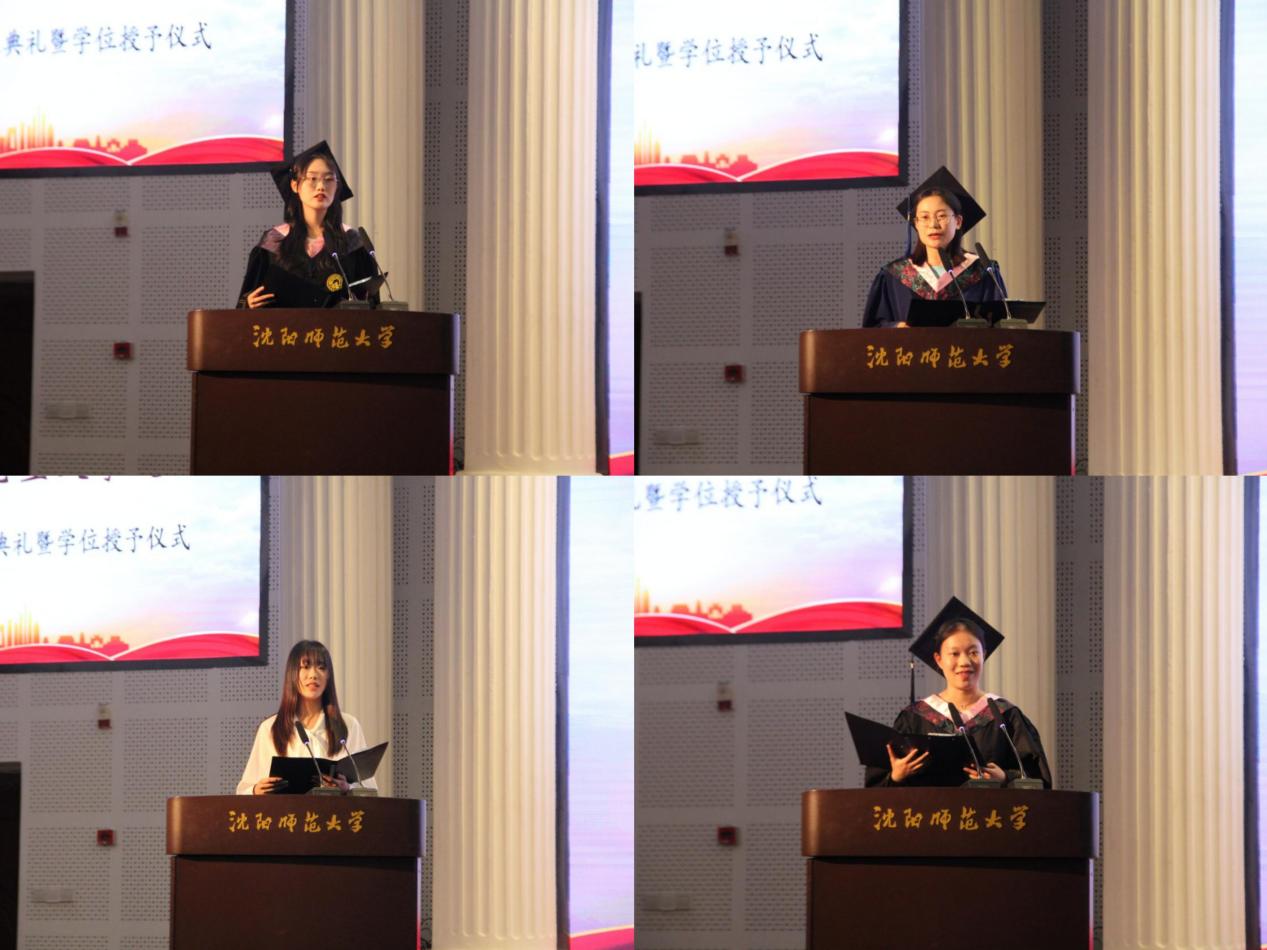 硕士毕业生代表陈思颖同学向师大母校以及公司致以最真挚的感谢。她提到,在师大的七年锤炼了专业能力,淬炼了责任担当;她也表达了对父母的感恩,是他们的辛勤付出给予了自己求学的巨大动力;她感谢公司的支持、老师的鼓励和同学的陪伴,最后她代表全体硕士毕业生表明决心:不畏艰难险阻,去迎接更多的挑战和机遇!