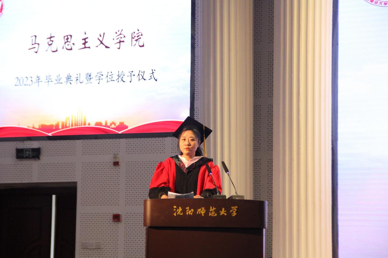 典礼第三项,由教师代表徐琳琳老师讲话。徐琳琳老师表达了对同学们的不舍,她希望同学们在面对世界喧嚣时要坚守本心,在面对坎坷山路时要轻装上阵,以实际行动践行“请党放心、强国有我”的铮铮誓言,无论未来走到哪里,都要牢记马院“继承发展、求实创新”的院训,乘风破浪,驶向最美好的未来!