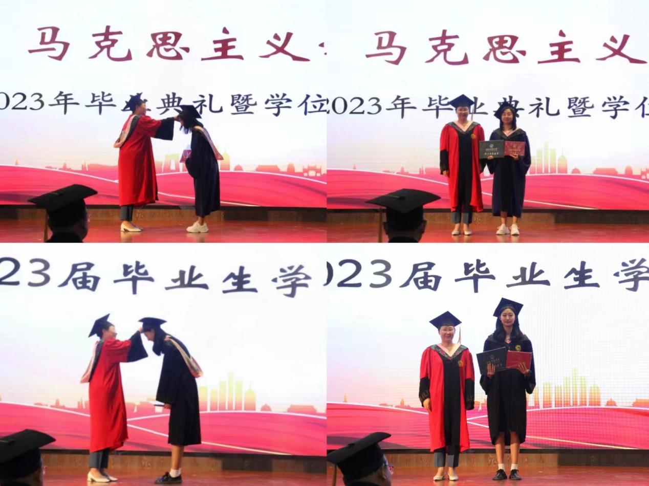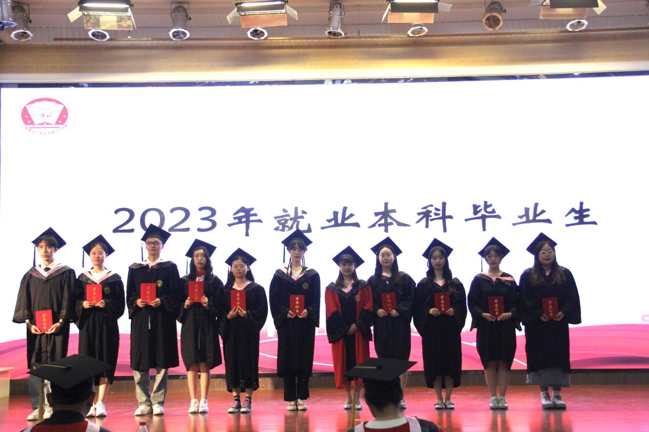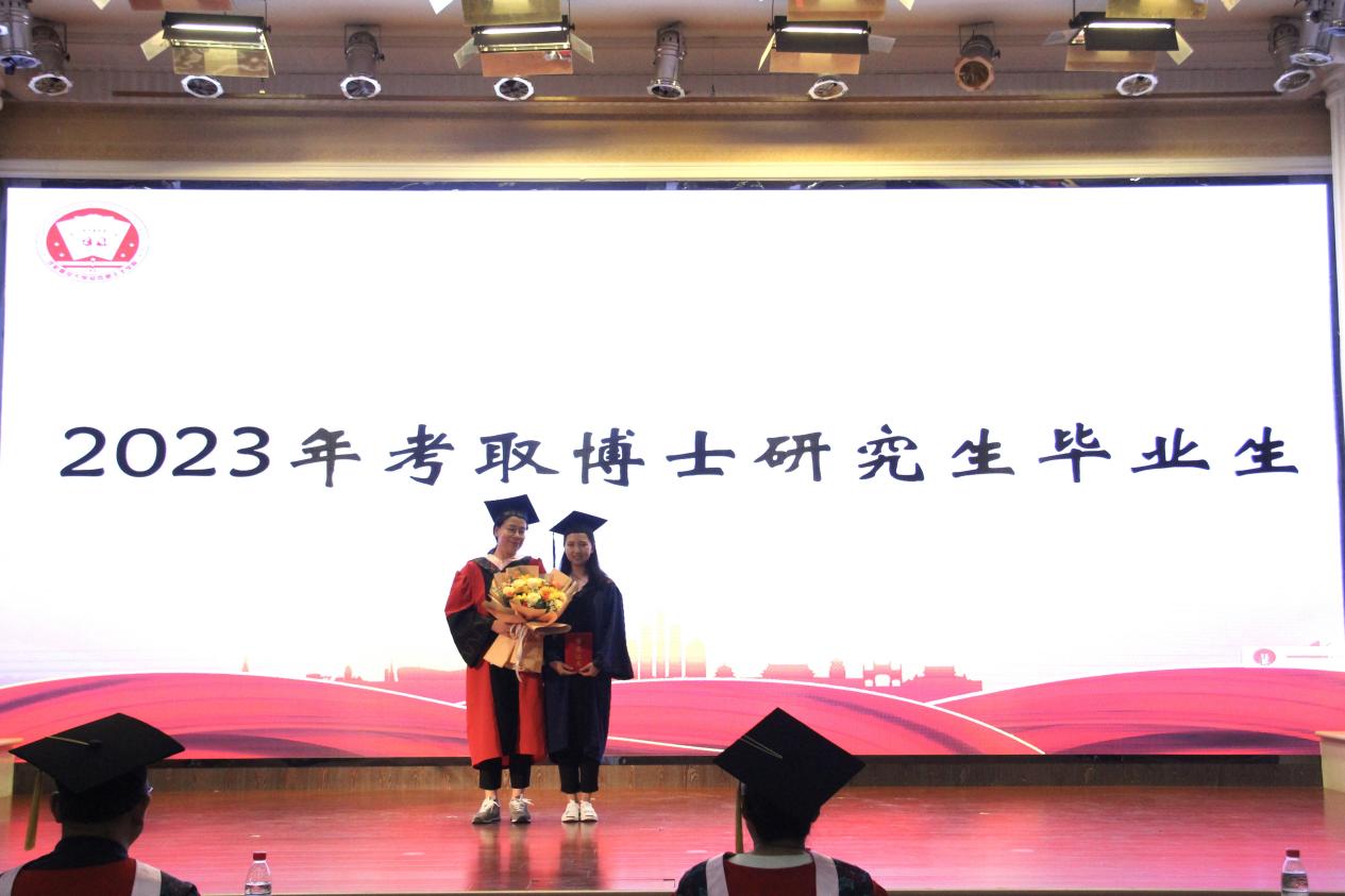 典礼第二项,由党委书记周军教授宣读省级、校级优秀毕业生表彰决定和考取博士、硕士研究生名单,随后由老师们为同学们颁奖并合影。