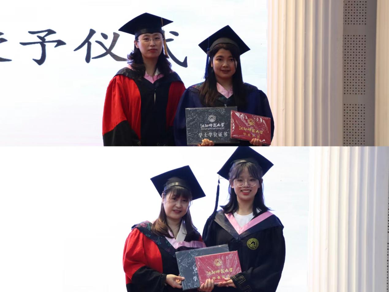 EMC易倍副经理李馨宇教授、王英伟教授分别为硕士研究生毕业生及本科毕业生颁发证书