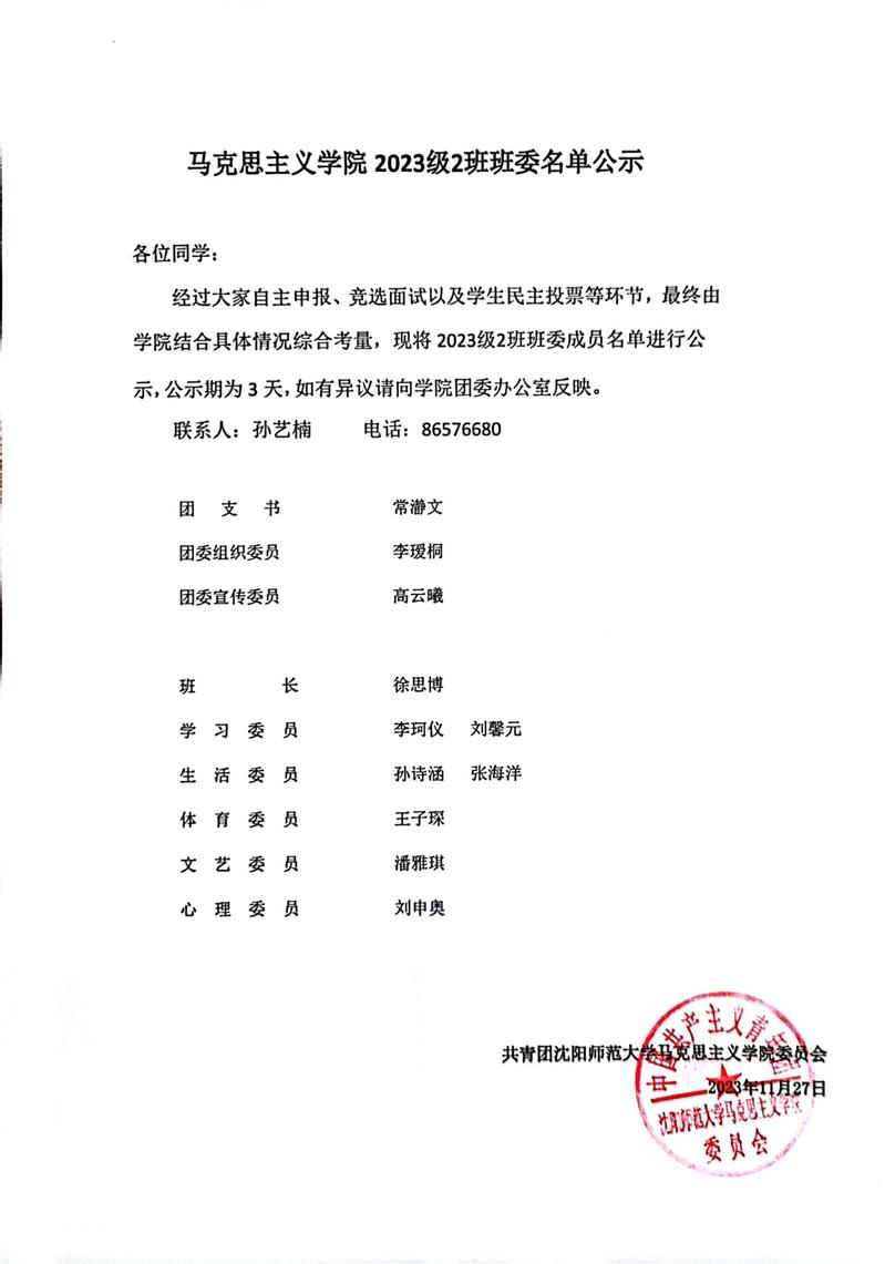 EMC易倍2023级2班班委名单公示
