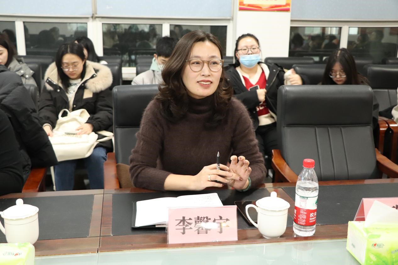 上半场,李鸥漫博士为研究生带来了题为《学习党的二十大,培根铸魂育新人》的报告。李鸥漫博士从主要内容、鲜明特征、行动指南三个方面对党的二十大报告内容进行了深刻阐释,通过十五个关键词更加深刻的概括党的二十大报告的主体内容,总结党的二十大报告的重大意义,进一步加深了与会员工对党的二十大报告丰富内涵的理解。她指出,做勇毅前行的新时代好青年,应坚定理想信念、厚值爱国情怀、乐于吃苦耐劳、勇于艰苦奋斗。随后,李鸥漫博士以自身对党的二十大的深刻理解,嘱托马院学子坚持以习近平新时代中国特色社会主义思想武装自身,努力成长为有理想、敢担当、能吃苦、肯奋斗的新时代好青年。李馨宇副经理在对李鸥漫博士报告的点评中指出,李鸥漫博士的报告带我们回顾了党的二十大的精彩内容,为我们进一步深入研究党的二十大报告内容、感悟党的二十大报告的深厚理论魅力和时代价值提供了帮助和启发。