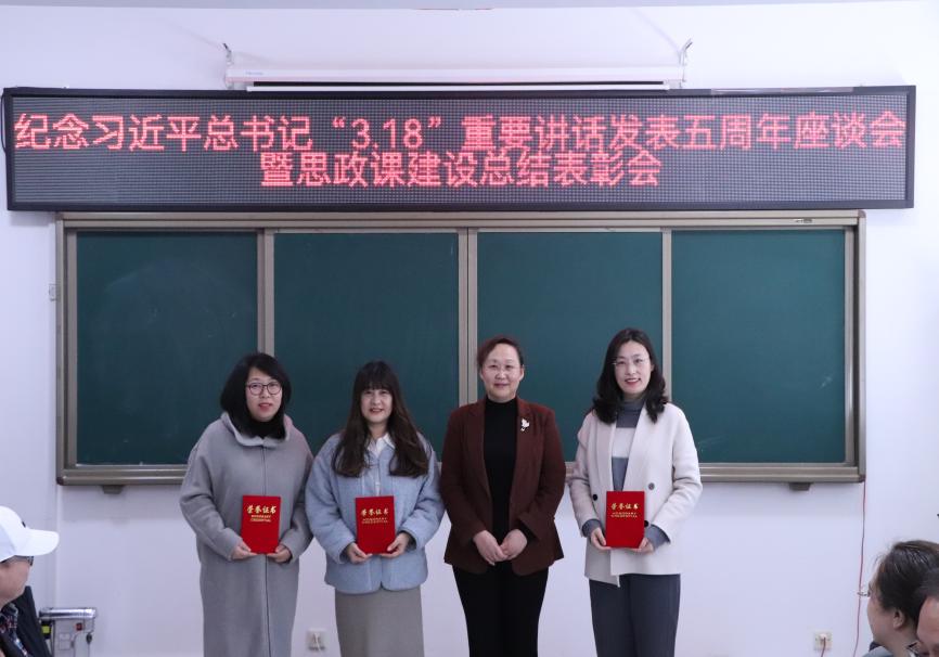 座谈会后,公司对近五年来获得省级以上教学类奖项,为公司思政课建设做出突出贡献的23名教师予以表彰,经理赵美艳教授为获奖者颁发了荣誉证书。
