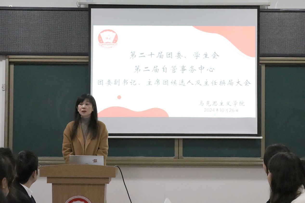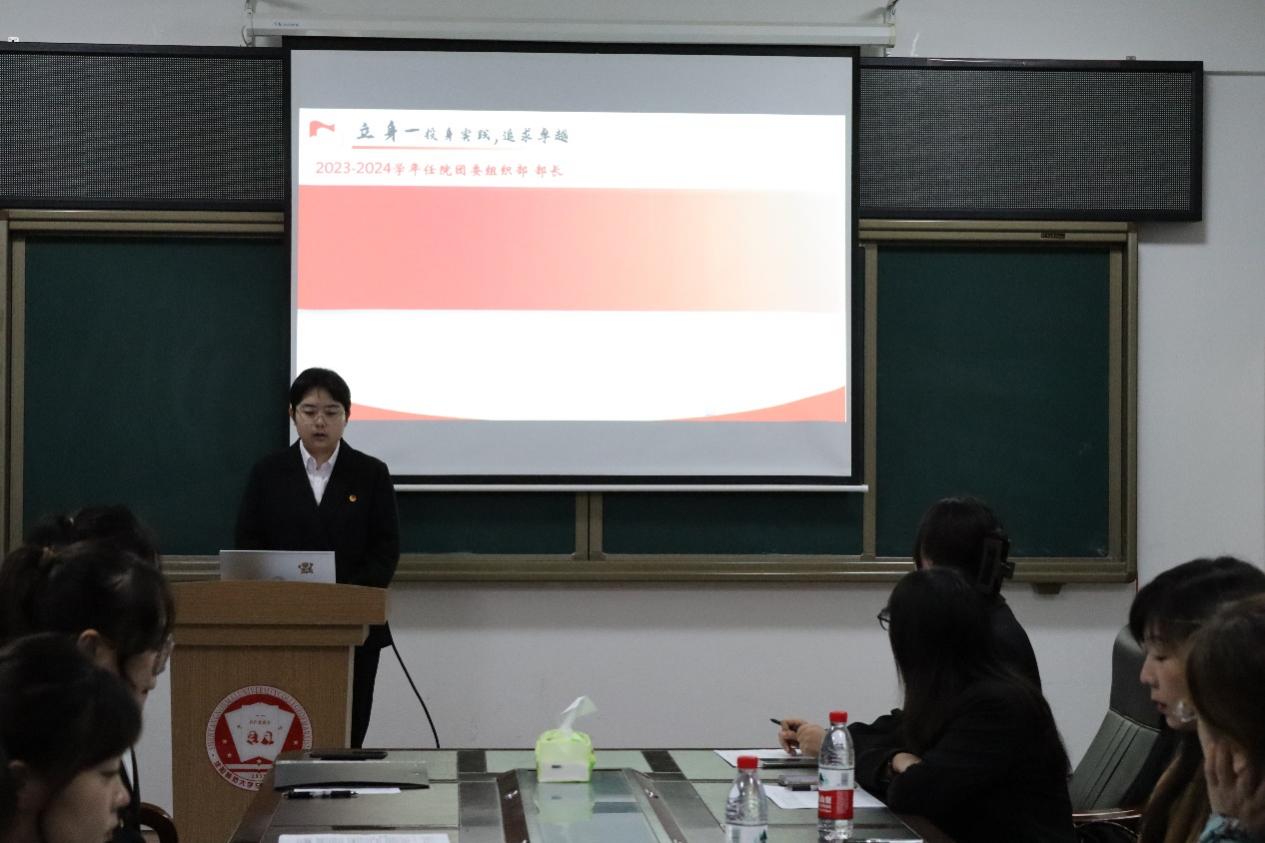 最后,团委书记孙艺楠老师对本次会议进行总结。首先,老师对全体团委、员工会及自管事务中心成员的辛勤工作给予了肯定。同时也指出工作中存在的不足,并指明了改进方向,为后续工作的开展提供宝贵经验。最后,孙艺楠老师期望第二十届团委、员工会及第二届自管事务中心员工骨干能够接过重任,继往开来,成为新一届有作为、有担当的员工榜样。