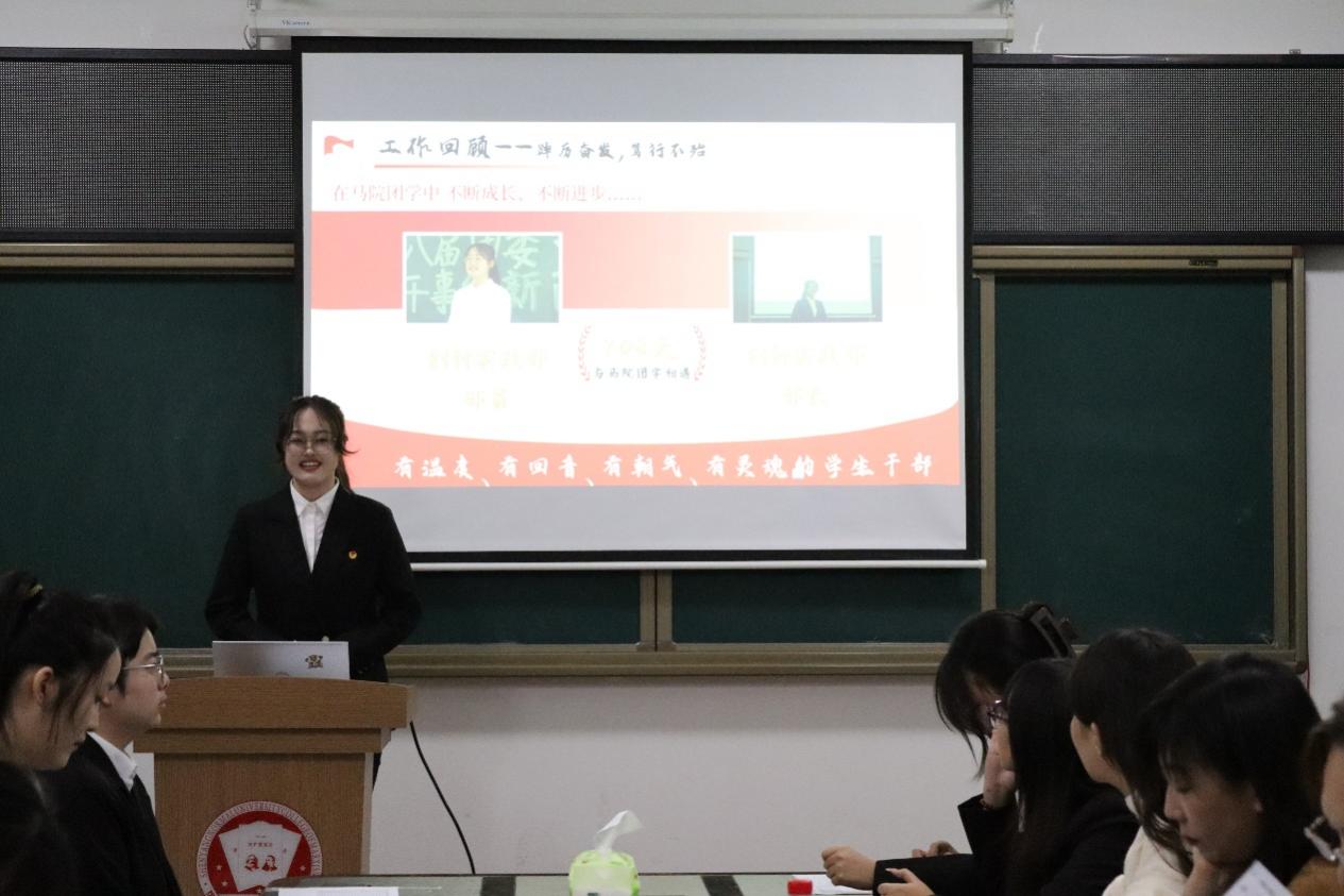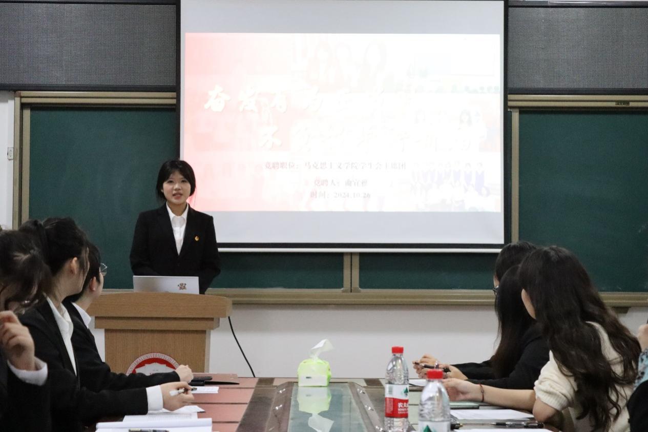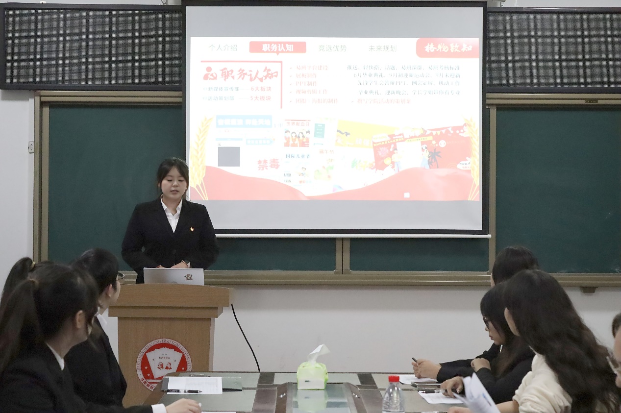 面试环节在汇文楼350EMC易倍会议室进行,公司党委副书记李晔南老师、团委书记孙艺楠老师、辅导员助理石家璇以及第十九届团委副书记、员工会主席团、第一届自管事务中心主任及各部门负责人出席会议并担任评委。本次会议由第十九届办公室主任郑慧馨主持。各位竞选者依次上台,分别从个人优势、工作经历以及工作展望等角度进行演讲。各位评委根据竞选者的演讲内容,及所选部门的工作具体情况现场提问,同时进行指导点评。
