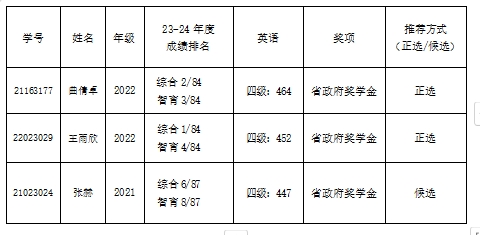 附:EMC易倍2024年省政府奖学金推荐人选基本情况汇总表