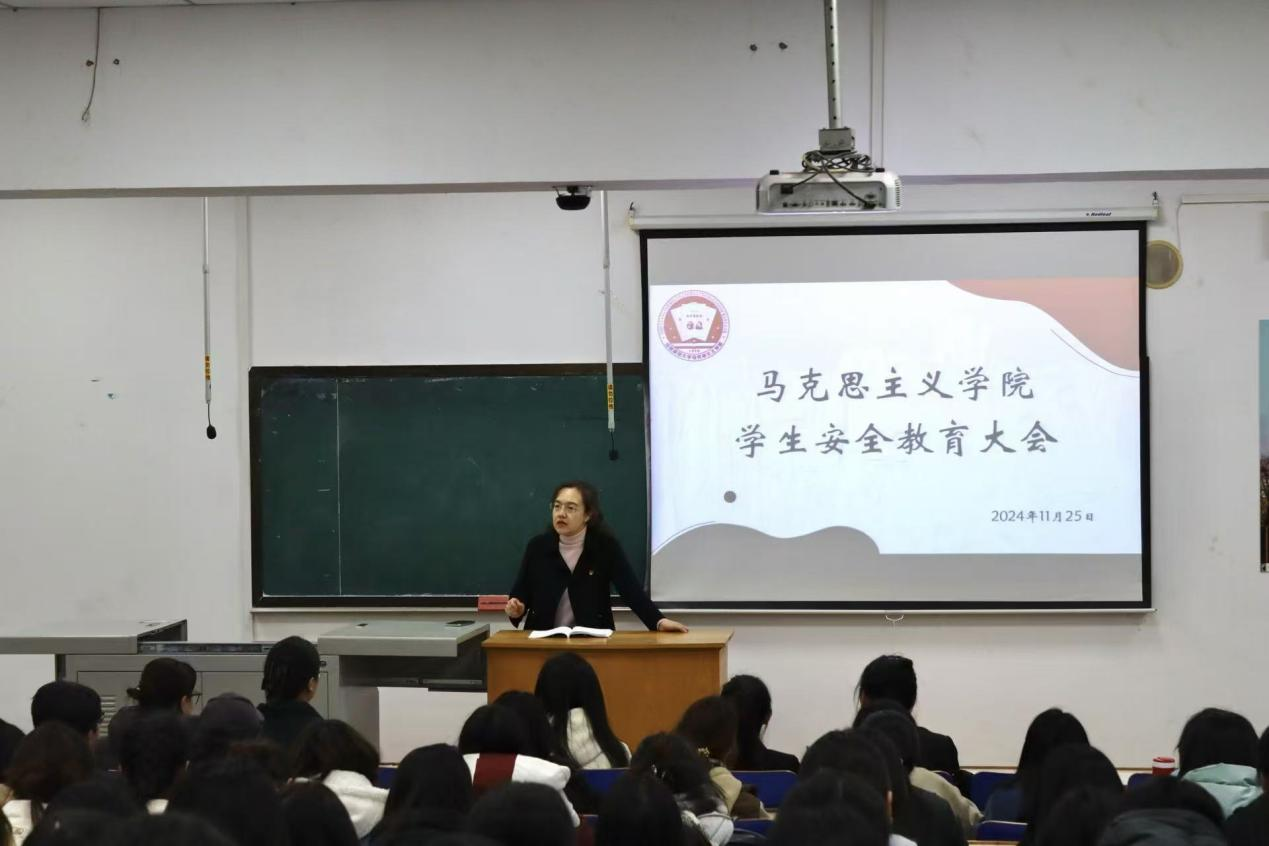 接着,党委副书记李晔南老师围绕着宿舍安全、身心安全、交通安全三大方面进行讲话。首先,她强调了宿舍用电安全的重要性,希望同学们遵守用电规定,共同营造安全和谐的宿舍环境。其次,针对员工的心理健康现状,她指出同学们要运用科学有效的方法,合理排解压力,进行自我疏导,养成积极向上的健康心态。最后,李晔南老师希望同学们贯彻并落实安全理念,为构建安全校园贡献力量。