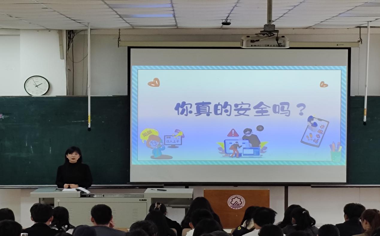 孙艺楠老师围绕反诈教育、学习生活、心理健康三个主题展开讲话。首先,她结合校园真实案例,强调员工需提高警惕,掌握反诈知识,增强反诈意识,做到“防范于心,反诈于行”。同时,她提醒同学们遭遇诈骗时应及时上报,充分利用校方资源建立反诈防线,切实维护自身权益。