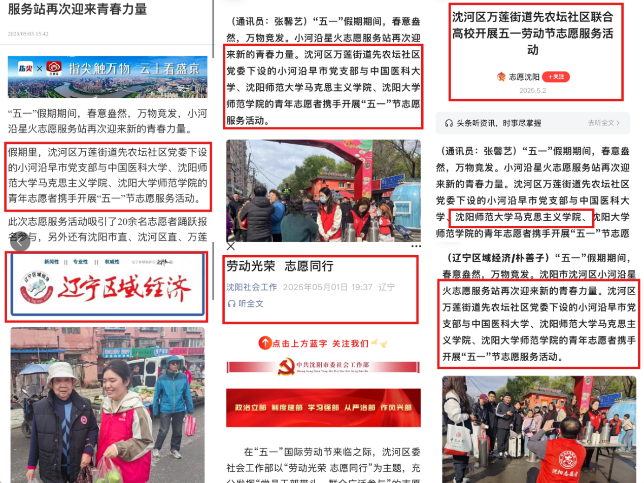 本次志愿活动被辽宁区域经济、志愿沈阳等多家媒体平台报道。在媒体镜头下,志愿服务的温暖底色融入城市文明基因,成为弘扬奉献精神的鲜活注脚。