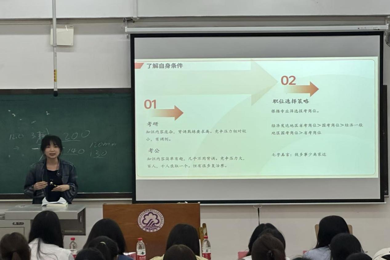 在互动环节,同学们积极就备考时间规划、岗位选择等问题进行提问,现场气氛热烈,掌声不断,营造了“共学共研、互促共进”的良好氛围。