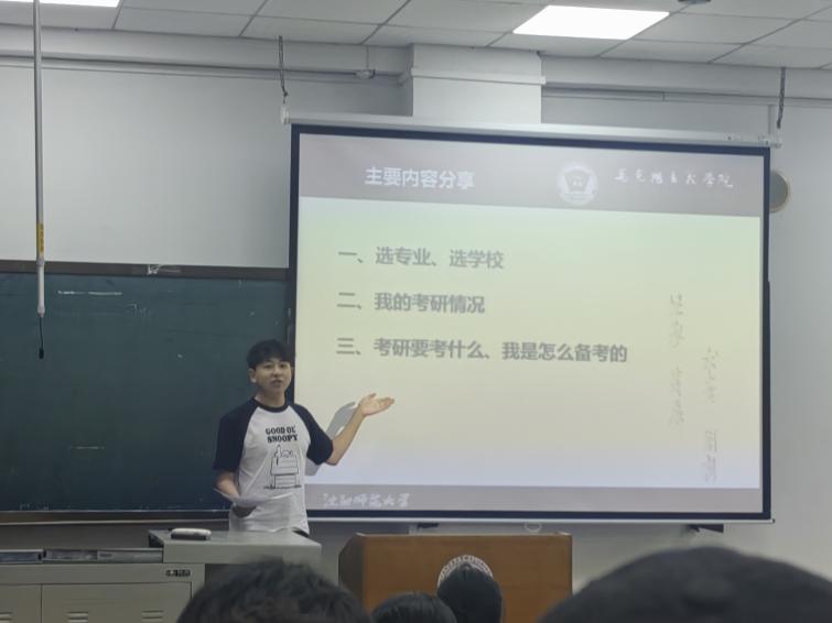 首先是考研经验分享环节,成功考取东北师范大学学科思政专业的2021级包智博同学,为同学们详细规划了考研各阶段任务与时间分配。他建议,基础复习阶段,要全面梳理知识点、搭建知识框架;强化提升阶段,通过真题与模拟题查漏补缺、提高解题能力;冲刺阶段则需调整心态、模拟考试以熟悉流程。同时,包学长还分享了时间管理技巧,建议制定每日学习计划,合理分配各科目学习时间,提升学习效率。他鼓励同学们考研途中要坚定信念、积极调整心态、坚持不懈。