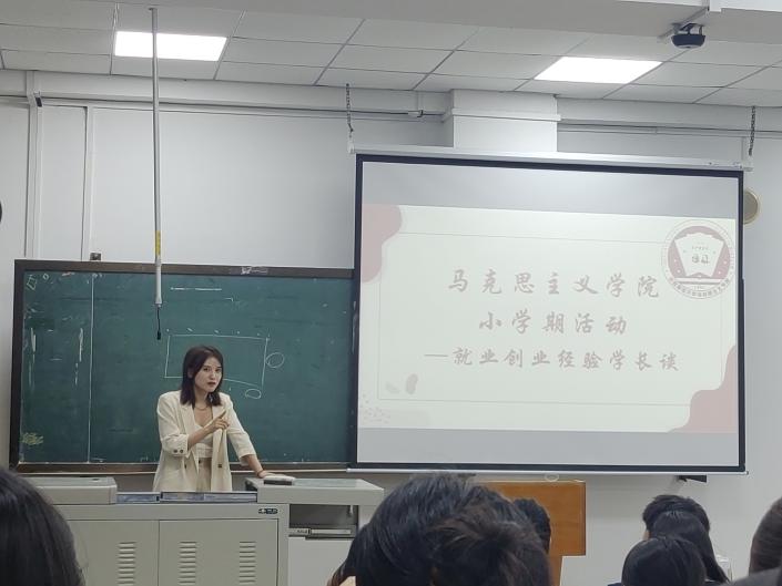 最后,姜云娇老师总结发言。她对2021级包智博同学和2021级孙菀婷同学的精彩分享表示感谢,鼓励同学们将经验转化为实际行动,结合自身情况制定就业创业规划。姜云娇老师强调,无论考研还是就业,都需同学们全力以赴、勇于挑战,不断提升自身能力。