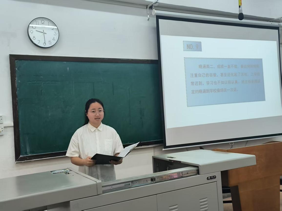 105教室由窦莹莹老师进行总结点评,窦莹莹老师肯定了选手们具备的正面引导意识。她指出,面对预设情境中涉及的学习动力、人际交往、青春期心理等典型问题,选手们普遍能尝试结合本专业相关知识和心理学基本知识,努力传递正能量,引导员工树立正确观念。她希望大家能以此次比赛为契机,不断积累经验,夯实基础,为成为优秀的思政课教师不懈努力。