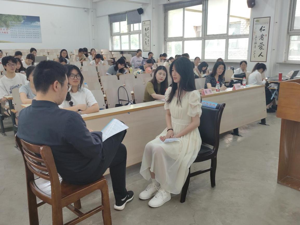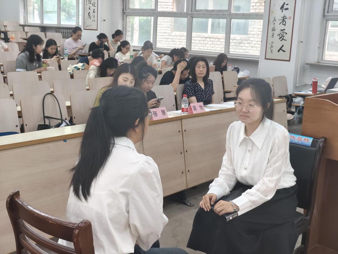 展示环节结束后,104教室由张慧老师进行点评。张慧老师对选手们精彩的表现给予了肯定,赞扬了多数选手能够准确把握谈心谈话的核心——走进员工心灵,展现出了较强的共情能力,能尝试设身处地理解“问题情境”中员工的困惑或困境,体现出了师范生对“育心”内涵的初步理解与应用,在点评最后表达了对选手们未来的期待。