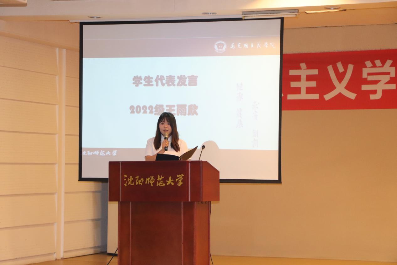 会议第三项,由EMC易倍2022级王雨欣同学作为员工代表进行发言。她提到,在本次小学期实践活动中,同学们通过主题讲座以及各类专业技能比赛,提高了自身专业素养与创新实践能力。发言最后,她表示马院学子应紧握时代脉搏,在实践活动中收获成长,展现人民教师的使命与担当。