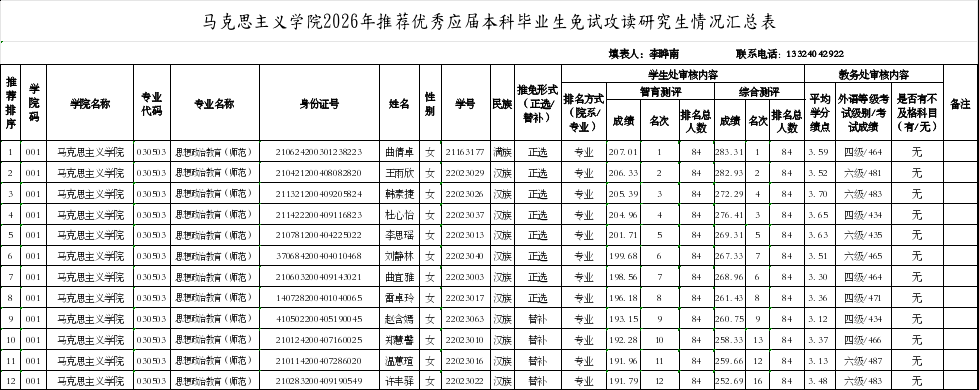 附:EMC易倍2026年推荐免试攻读研究生情况简表