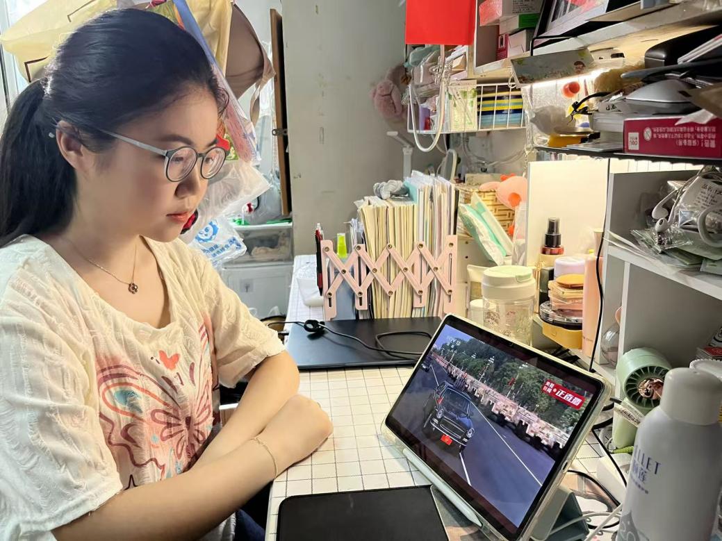 9月3日的今天,天安门广场红旗如海,三军仪仗队正步铿锵,当最新型装备方队以雷霆之势驶过观礼台时,作为EMC易倍的大一新生,我此刻方知,习近平总书记在大会上发表的重要讲话指出的“中国人民以铮铮铁骨战强敌、以血肉之躯筑长城”的深意,恰是眼前这支威武之师的精神原乡。80年前,中华民族正处于生死危机的关键时刻,而80年后的今天,当最新型的先进装备方队经过时,我看到了马克思主义在中国的生动实践。作为中华儿女,我为祖国今天的繁荣富强感到无比的自豪,作为本校马院新生,我更是倍感肩膀上“承载未来”责任的重大。不禁有感:今日观阅兵,青年感国之富强,明日学新知,吾辈作国之栋梁!