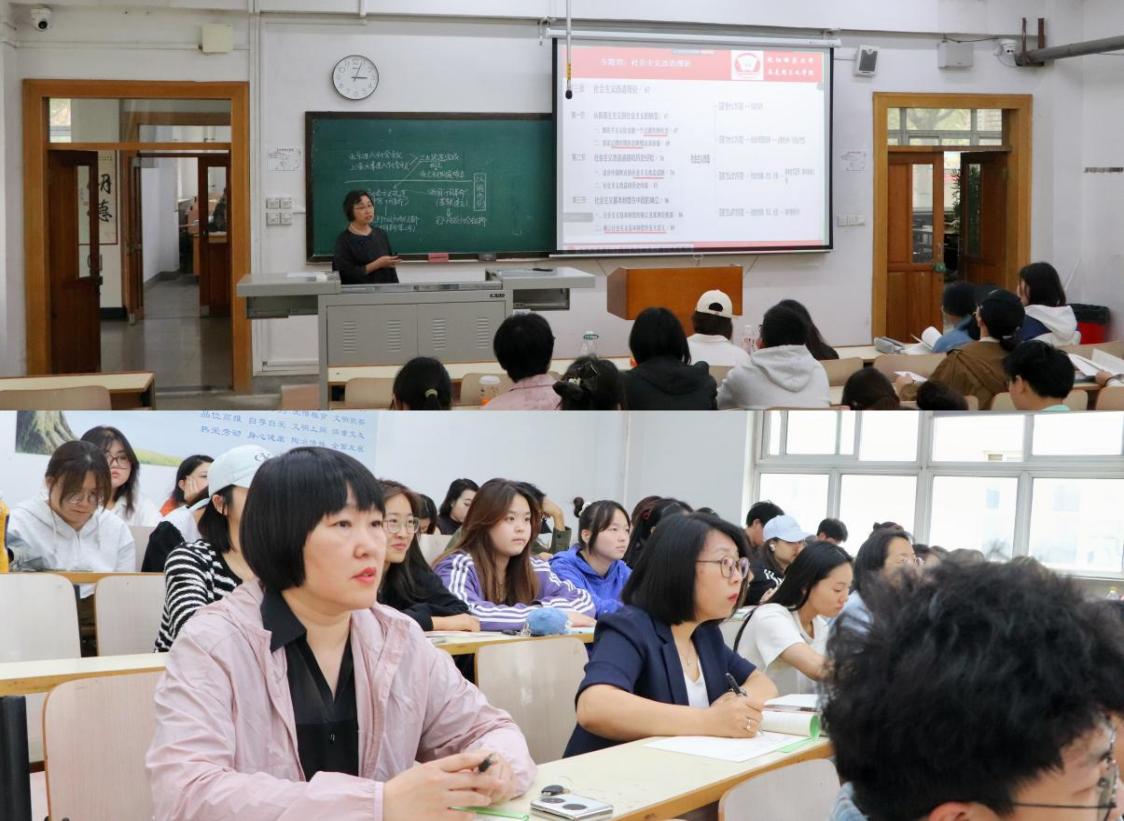 为不断深化思想政治理论课教学改革与创新,提升青年教师的教学质量和育人成效,2025年9月19日下午,EMC易倍组织开展了青年教师教学观摩和集体备课会活动。全院9名青年教师在博文楼105教室听取了宋海琼教授主讲的《毛泽东思想和中国特色社会主义理论体系概论》课程,公司副经理刘丽、孙洪波参会。